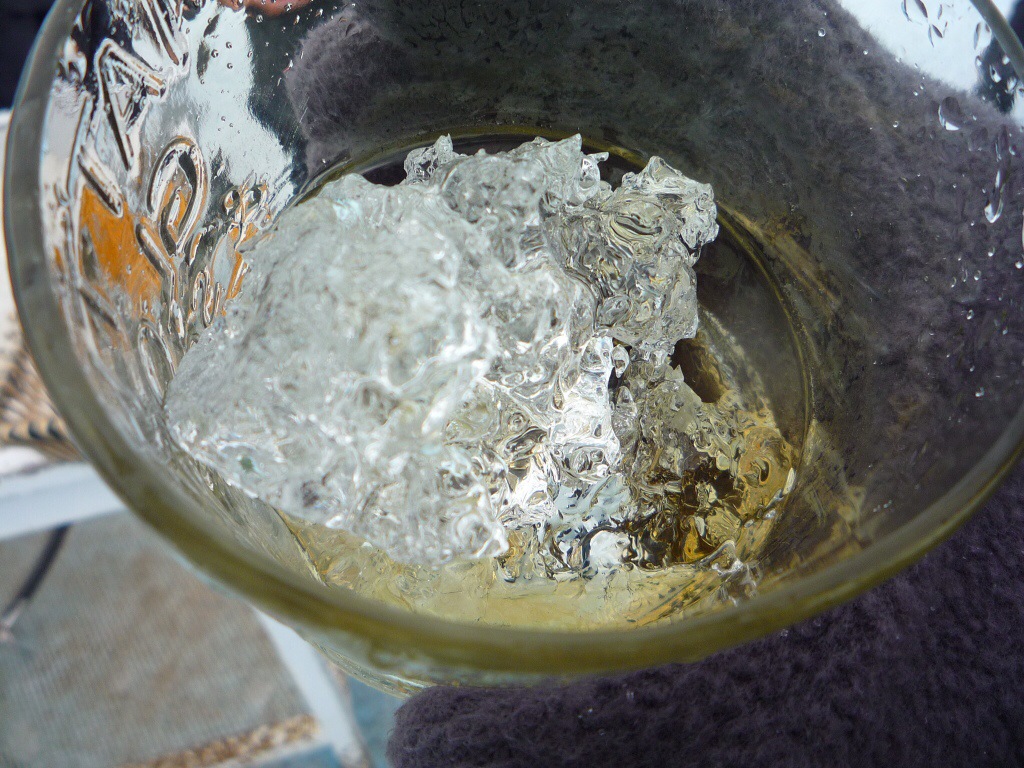 Sure enough, when we reached the top we did. It was a dark golden Scottish ghost. In a bottle, called Chivas Regal! Juan’s climbing partner had gone ahead of us and set up a mini bar, where he gave us Chivas Regal in a glass of glacier ice (that he hacked off the side of the glacier), and cookies. It was a nice touch. After this, we descended down the glacier and explored the forest at the base, and tended to the boardwalk for a closer look at the face of the glacier. We were lucky enough to hear and see three carvings – thunderous cracks which preceded massive fallings of ice. The giant ice carvings splashed loudly, and created waves in Lago Argentino.